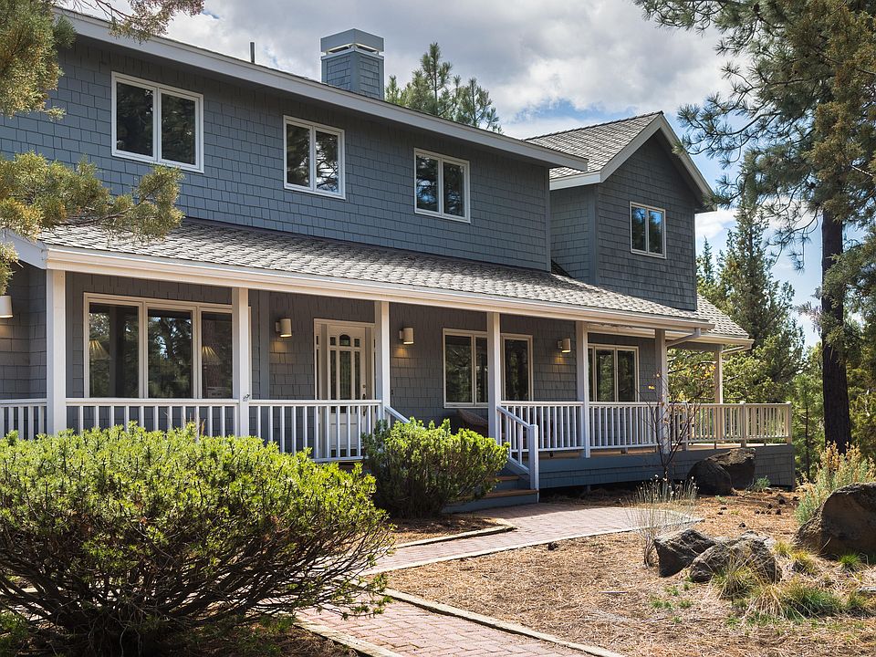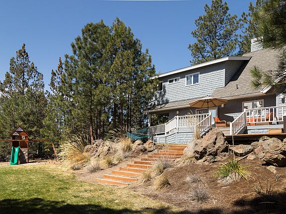Beautiful vaults and contemporary lines let the light flood in this custom home with large trees for privacy and greenery from every window. The 1.4 acre lot is rare for Bend's westside and creates a private, south facing back yard perfect for watching the kids play from your covered porch or kitchen window. The master bedroom has 3 clothes closets, double vanities, and an extra room open to the second staircase that would work nicely for a study, work out room, or nursery. There is second master suite on the main level that is currently being used as an office with the walk-in closet converted to a 1100 bottle wine cellar. Newer features include the stacked stone custom gas fireplace, laminate flooring throughout the main floor, custom railing, high efficiency gas furnace, & hot tub. This is an extraordinary value for the square footage and lot size on Awbrey Butte. Don't miss the virtual walk through tour!!