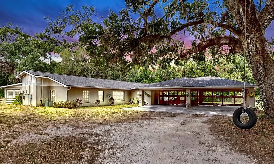 CHARMING COUNTRY ESTATE! NO HOA! 5 ACRE PROPERTY with a lovely pond and creek! Enjoy country living with this spacious home, featuring 4 bedrooms, 3.5 bathrooms, detached 2-car garage, and a 4-car carport! Inside is an open foyer leading to ample living space, including a living room, great room, and den with a WOOD-BURNING FIREPLACE! OAK HARDWOOD FLOORS & TILE FLOORS THROUGHOUT! The kitchen features WOOD CABINETS, TILED BACKSPLASH, EAT IN SPACE, AND DRY BAR PLUS ADDITIONAL COUNTER SPACE AND CABINETRY! The homes split bedroom layout is perfect for extra privacy. The very well-sized great room has a WET-BAR & HALF BATH with endless possibilities! The owner's suite features CROWN MOLDING AND A WALK IN CLOSET, with its own PRIVATE SUNROOM which can easily be utilized as a sitting room or office! The Ensuite bathroom features include DOUBLE VANITIES, TILED GARDEN TUB, & SEPARATE WALK-IN SHOWER! The land is 165 FT dry and perfect for farming and agriculture use, including a workshop, barn, stable, and storage! The separate building structure has separately metered electricity with 200-amp service. *2023 ROOF! NEW WELL PUMP! * Don't miss your opportunity to own this incredibly unique estate! Call TODAY to schedule a private viewing!