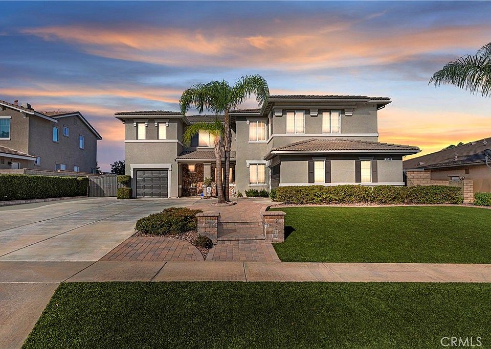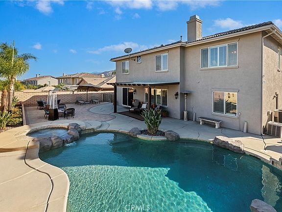 Welcome to 1641 Via Sevilla in Corona, CA — an exquisite executive residence nestled in the green hills of South Corona. Located just minutes from top-rated schools, shopping, dining, and convenient freeway access. Offering 5 bedrooms, 3 bathrooms, and approximately 3,486 sq. ft. of living space on a generous 10,454 sq. ft. lot, this home blends timeless elegance with thoughtful upgrades. From the curb, the home impresses with its easy-to-maintain landscaping featuring low-water plants and turf, an extra-large driveway, and a 3-car garage with RV parking potential. Beautiful double front doors with custom glass inlays provide a warm welcome into a bright and open floor plan. Inside, you’ll find refined details including wainscoting, wood shutters throughout, and an abundance of natural light. The spacious living and dining rooms flow seamlessly into the family room, enhanced with a custom surround-sound system for an immersive experience. The kitchen is truly the heart of the home, showcasing a large center island, granite countertops, a walk-in pantry, and newer appliances (dishwasher just one year old, microwave two years old). A central vacuum system adds modern convenience, while the upstairs offers generously sized bedrooms along with a large bonus room—perfect as a game room, home office, or media space. The backyard retreat is designed for both relaxation and entertaining. Enjoy the shade of the Alumawood patio cover, gather around the firepit, or host barbecues at the built-in outdoor kitchen. The sparkling rock pool and spa have been refreshed with cleaned tile and repainted rock features, while the pool heater and pump were recently replaced for worry-free enjoyment. Additional highlights include paver hardscaping, a dog run on the side yard, and easy-access outlets for Christmas lights conveniently controlled from inside the home. Practical upgrades such as two HVAC systems, a Brinks alarm system with cameras, and recently replaced garage doors and exterior paint (completed one year ago) add both comfort and peace of mind. With its combination of resort-style amenities, energy-conscious landscaping, and premium location nestled in the hills, 1641 Via Sevilla offers the ultimate Southern California lifestyle.