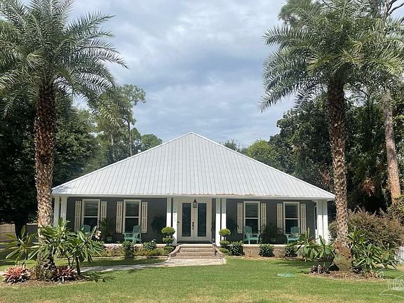 A Must See! This customized 'owner built and occupied' home on Innerarity Island is definitely one to put on your search list to see first. The owner has taken the guess work out of the modern comforts of home-life when designing this home. Heavy front doors, 165 mph hurricane proof windows, metal roof, MiraTech composite wood, moisture, rot and termite resistant exterior 50 yr warranty, fully extra insulated attic keeping electric bill mid $200 year round, hardwood floors. Spacious kitchen with all stainless steel appliances, LG large refrigerator with front glass double open door with light, allowing a quick view or only opening the front part to grab a drink. A built in pot filler faucet over large gas stove, farmer style sink built in island, all brass fixtures, convection mircrowave and stove, 2 spice cabinets both sides of the stove, built in mixer cabinet, wide flat pan cabinet w/ separating racks above the oven, designed tile stove back splash with clear covers on sides to stay clean. Large centered island with heavy, thick high-end marble top. Formal dining area, laundry room near back of house, oversized stainless steel washer and dryer, and 1/2 bathroom. The master bathroom contains glass door, tiled large shower, a white claw foot tub w/ brass side fixtures, separate full vanity sinks on each side of the bathroom, one with built in makeup area w/ chair and lots of drawers and cabinet space around both. Master bedroom closet with built in shoe wall, extra shelving, top and bottom clothes racks. Private back yard wood fence with natural woods behind, 15 x 8 screen back porch. Far set back from road, 48 ft front porch across width of home, grassy front yard, 120 sq ft yard building.Disclosure: Buyer to verify all measurements.
