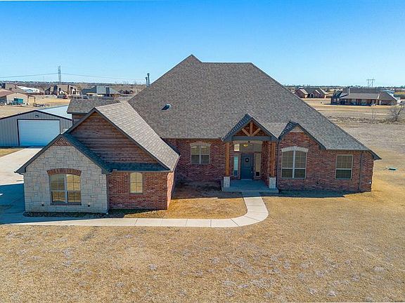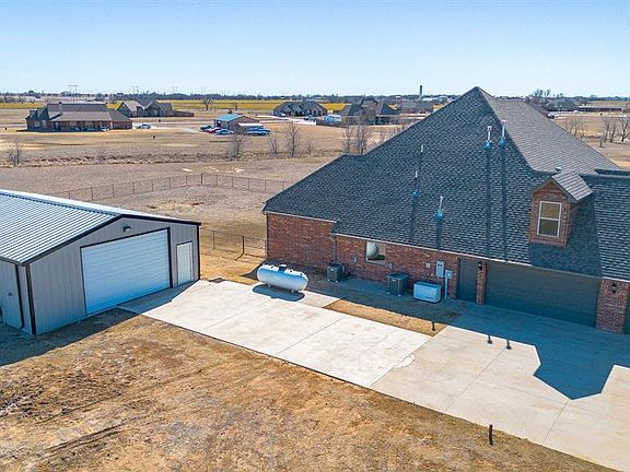 2.78 acres MOL with a 30' x 50' spray foam insulated shop! The shop has (2) 200-amp 30-space electrical panels on it's own meter, 10' x 16' garage door with opener, Two HVAC units, and an additional exterior-mounted 220V outlet. The house has 4 bedrooms, 3 full baths with an office, offering just over 3,100 SqFt of living space. 12' entry ceilings and 16' living room ceilings, creating an open and airy feel. This house has an awesome floor plan with the primary en suite and upstairs family room on one side of the home and 3 bedrooms, 2 full baths and an office on the other. There is an oversized 3-car side-load garage with an in-ground storm shelter. The property also has a Generac generator, 500-gallon propane tank, a large fenced backyard, and outdoor kitchen! Upstairs, an additional living space is ideal for a movie or game room. A well-equipped home with space, storage, and tons upgrades just in time for summer fun!! Schedule a showing today!