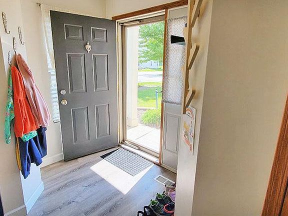 CORNER UNIT on a quiet, tree-lined street! Enjoy comfort and privacy in this spacious end unit Townhouse built in 2003 in Crest Hill featuring 2 bedrooms, 2.5 bathrooms, and attached 2-car garage. Sun-filled open first floor with tons of natural light, and durable, comfy Sterling Oak Lifeproof luxury vinyl flooring throughout. Updated kitchen features easy-clean Klearvue Stromma Shaker Door Cabinetry with champagne gold hardware. Base cabinets have large pull-out drawers- No more bending to dig through the back of the cabinets! Oversized 33" inch Kohler Riverby enameled cast iron sink with sloped base, gold brass drain, champagne gold Delta Trinsic magnetic docking faucet with pull-down sprayer makes cooking and cleaning a breeze, Stainless Steel LG French-door fridge with freezer drawer, Samsung adjustable-rack dishwasher with awesome 60-minute express wash, Stainless LG Range (gas) with Brilliant Blue enamel interior. Built-in cabinets extend kitchen into breakfast nook area, with elegant sideboard and glass-front cabinet doors for additional storage and display. Bright & cozy dining area perfectly sized to fit a buffet cabinet, built-in seating/storage, or dining for 6. Connects to living room with airy, vaulted ceilings and clerestory windows for an abundance of warm sun and a private moonlit view at night. Real gas fireplace with a beautiful pinewood mantel with Turkish matte porcelain tile face. Large mantel cubby and custom aspen wood mantel hooks included to display your memories and holiday decor. Master bedroom offers Palladian windows for gorgeous sunlight, a large walk-in closet and en-suite bathroom with double sink, large vanity and extra nook to fit a linen cabinet/shelving. Spacious 2nd bedroom with large sliding door closet, located just off 2nd full bath with full bathtub. Enjoy worry free winters with new Furnace (2023) and Water Heater (2023). Convenient 2nd floor laundry includes Samsung HE Font-load washer with Super Speed & AddWash door, Samsung Multi-Steam large capacity Dryer w/ WiFi. Leads to large loft space, ideal for a home office, craft space/sewing room, or playroom. Exterior includes a quiet patio area with room for a full-size grill, bistro table and chairs. Property backs up to fence for additional privacy. Decorative red brick retaining wall wraps around the property with ample space to garden. Enjoy surrounding scenery down the way past Renwick Club pond with water fountain, and nearby playground. HOA of $160 per month includes lawn care, snow removal. There is no clubhouse or fitness equipment. Conveniently located down the street from Mistwood Golf Club, just minutes from Plainfield shopping, dining and entertainment along Route 59.