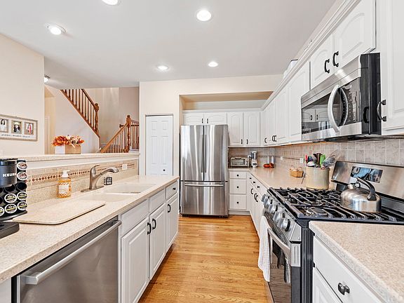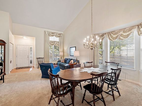 Welcome to the largest model available in Carillon Lakes 55+ community- this beautifully maintained Sun Valley model! Tucked away on a quiet cul-de-sac, this home offers both comfort and convenience with over 2,500 sq. ft. of living space plus a finished basement. Inside, soaring vaulted ceilings in the living and dining rooms create an open, airy feel. The kitchen is designed for both style and function with white cabinetry, hardwood floors, and newer (2022) stainless steel appliances. A breakfast nook, cozy family room with fireplace, and bright sunroom flow seamlessly together, perfect for gathering or relaxing. French doors open to the sunroom and out to your private patio. The first-floor primary suite makes everyday living simple, featuring a spa-like bath with double vanity, soaking tub, and separate shower, plus a walk-in closet and additional wall closets. Upstairs, the loft with skylights provides flexible space along with two additional bedrooms and a full bath.The finished basement expands your options with a fourth bedroom, full bath, recreation space, and plenty of storage-including a designated unfinished storage room. Recent updates include: 2024 windows in family room and master bedroom, 2022 stainless steel kitchen appliances, 2021 Maytag washer and dryer, 2020 roof, 2020 carpet, 2025 ejector pump. This home is equipped with recessed lighting throughout as well as a whole home speaker system. In this guarded, gated community, you'll enjoy resort-style amenities including indoor and outdoor pools, tennis courts, pickleball courts, bocce ball, 3- hold golf with putting green, a clubhouse with year-round events, multiple ponds, and scenic walking paths.