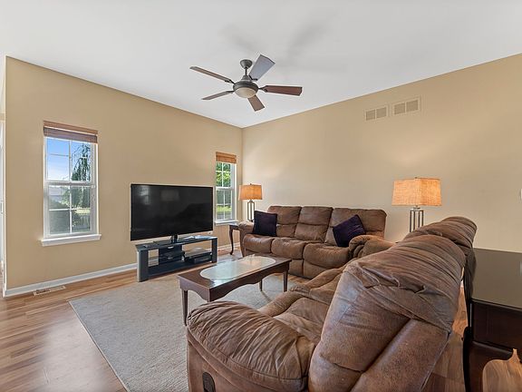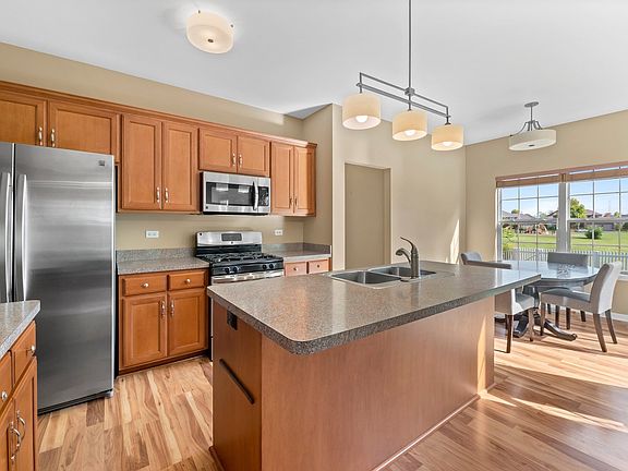 Welcome home! This gorgeously maintained home - perfectly nestled on a premium lot backing to a park in Plainfield's Hidden River subdivision - is ready to help new owners make memories for years to come. Upon entering, enjoy an open floor plan offering large living spaces full of natural light. A wonderfully spacious living room hosts gleaming wood laminate flooring and opens beautifully to a large kitchen offering an island, lots of cabinet and counter space, a full complement of stainless steel appliances, and eating area. Adjacent to the kitchen, a formal dining space overlooks the peaceful neighborhood. These beautifully bright, airy spaces work together to create a perfect space for entertaining family and friends! This home comes complete with two bedrooms offering updated carpeting (2019), and a home office - ideally located off the entry - that can easily be converted to a third bedroom; large main floor laundry room; attached 2-car garage; and spacious unfinished basement perfect for customizing to suit your needs! Outside, homeowners can enjoy a cozy front porch perfect for enjoying every fall sunset, and a backyard oasis offering a patio and large fenced yard overlooking the gorgeous green space behind the home. Ideally located near the Mather Woods Forest Preserve and only 10 minutes to all the shopping and dining Downtown Plainfield has to offer. Don't miss your chance to own the perfect Plainfield home! See video walkthrough for more information.