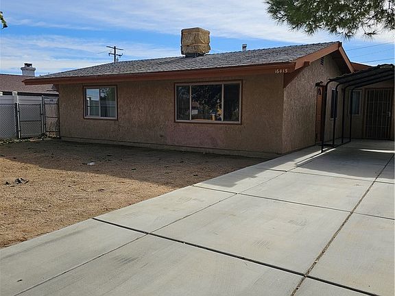 Nicely maintained home in the city of Hesperia. This home features a large living area with a separate dining room, well appointed kitchen with nice tile back splash and stainless steel appliances. A large wall niche with bar looks into a bright spacious living room. The two bedrooms are next to a Beautiful main bathroom featuring a gorgeous walk-in shower and an additional half bath with adjacent laundry room completes the living space. An over-sized bonus/game room leads to the 2 car garage complete with cabinets and a full length work bench for your projects. The back yard is fenced for privacy with an outdoor cooking area complete with propane BBQ. A long counter and bar offers plenty of room for a drink fridge and any storage you may need. The built in wood burning firepit completes this private cozy outdoor living space. A little care will bring the landscape back to its former beauty.