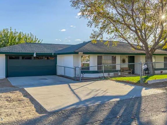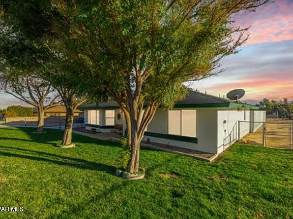 On entering the backyard, you will love the green grass! There is plenty of SHADE to keep you cool as you entertain on the two large concrete pads 21x21 and 10x21, ideal for a band and dance floor! Electrical outlets are also in the backyard truly an entertainer's delight! Bring your animals to this completely fenced, clean, flat and usable property complete with horse corrals. Mature shade TREES in the front and backyard!