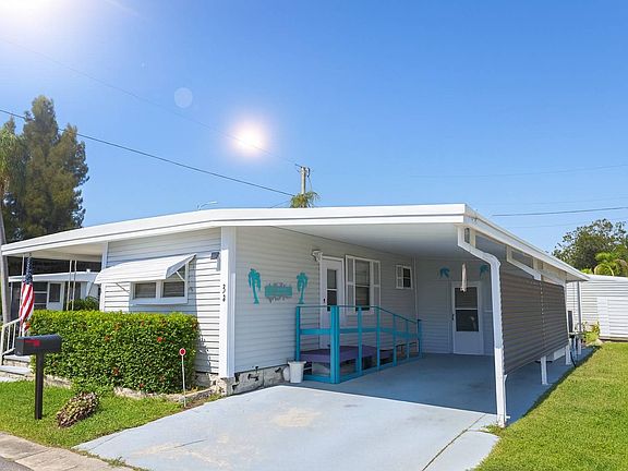 Welcome to Embassy Mobile Home Park, conveniently located at 16416 US Highway 19 North in Clearwater, Florida. This vibrant 55+ COMMUNITY offers an array of AMENITIES, including a HEATED SWIMMING POOL, inviting CLUBHOUSE, and SHUFFLE BOARD COURTS -perfect for staying ACTIVE and SOCIAL year-round. This SPACIOUS GREY VINYL SIDED CORNER-LOT, DOUBLE-WIDE home boasts 1,344 SQ FT of living space and comes FULLY FURNISHED for your convenience. The exterior showcases durable VINYL SIDING and a TPO ROOF under warranty for lasting peace of mind. The property features a 2-CAR covered CARPORT that has been EXTENDED for additional space, ideal for extra parking, entertaining, or outdoor seating. It also includes 2 STORAGE SHEDS - one serving as a dedicated LAUNDRY ROOM, and the other a 12x12 shed offering plenty of ADDITIONAL STORAGE. Accessibility features such as a HANDICAP RAMP and SAFETY HANDLES throughout provide ease and comfort for daily living. Enjoy both COVERED and UNCOVERED PATIO AREAS, perfect for relaxing or hosting gatherings. Inside, the home is equipped with MODERN conveniences including a GLASS-TOP STOVE, DISHWASHER, 2-DOOR STAINLESS STEEL REFRIGERATOR with ICE and WATER DISPENSER, along with 6 CEILING FANS and ample storage throughout. This home is located in a RENTAL-FRIENDLY COMMUNITY with a LOW LOT RENT of only $747.00 PER MONTH, which includes WATER, GARBAGE, SEWER, and LANDSCAPING-an incredible value for all that is offered. PARK APPROVAL is REQUIRED. The application process includes: - BACKGROUND CHECK (no felonies) - INCOME VERIFICATION - RENTAL VERIFICATION - NO EVICTIONS, NO FORCLOSURES, and NO BANKRUPTIES within the past seven years. Don't miss your chance to own this beautiful home in Embassy Mobile Home Park-CALL TODAY to SCHEDULE your PRIVATE SHOWING before it's gone!