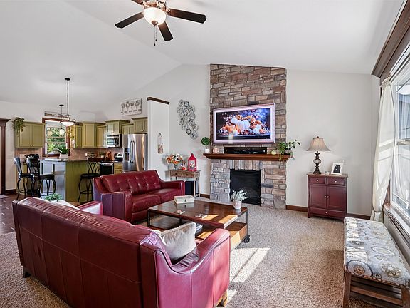 Move in ready ranch home on Phoenix Drive in Clive! Walking in the front door you'll see an open floor plan that has been meticulously cared for. The front room immediately draws your eyes to the eat-in kitchen and outdoor covered deck space located right off the kitchen. The outdoor area is such an inviting space set with furniture to stay with the home. Stepping off the deck you'll find more room to enjoy the outdoors with an impressive stamped patio! On the main level of this home you'll find the bright white laundry area, three spacious bedrooms with one currently set up as a home office. As you walk downstairs you'll find a rec area to impress, complete with a wet bar, full fridge, and pool table. Another spacious family room, bedroom, and bathroom are located in this finished basement. Ample storage located in the HVAC room. With most indoor and outdoor furniture to stay, this home is truly ready for you!