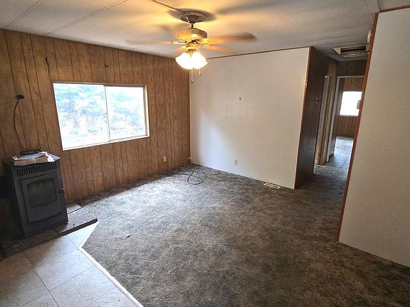 This charming home is fully fenced and packed with upgrades completed just last year, including a new furnace, pellet stove, microwave, water heater, range, large walk-in shower, and freshly painted cabinets with modern hardware. Inside, you'll find tile and laminate flooring in the kitchen and dining areas, plus both a den and a living roomperfect for creating separate spaces or enjoying quiet conversations. Two spacious bedrooms each feature walk-in closets, while the covered porch provides a shaded outdoor retreat. Washer and dryer are also included for your convenience. The home sits on a permanent foundation, making it ready for financing, and comes with a cozy one-car garage that can double as a workshop. Outside, enjoy mountain views from the backyard, along with the benefits of being located outside the flood zone, connected to the sewer system, and supplied by Erskine Creek Water. Schedule a showing today to see all the thoughtful upgrades this home has to offer!