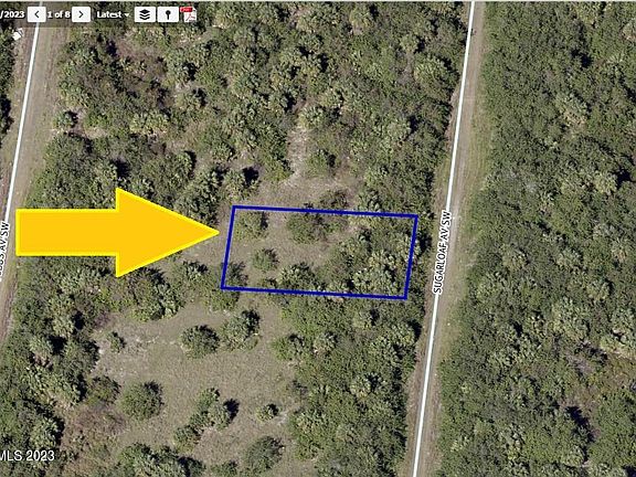 0.23 acre single family residential lot [Rs-2 Zoning] available in the buildable Port Malabar Unit #49 of Palm Bay. Nicely located in the rural SW section near the famous Compound, this lot is just 2.7 miles -7 minutes- to Publix Shopping, 1.4 miles -4 minutes- to Bayside High and Westside Elementary Schools, 11.6 miles -23 minutes- to the Melbourne Square Mall, and just 32 minutes to the beaches in Indialantic.. From Exit #176 of I-95 go west on Palm Bay Road NE. Turn left on Minton Road NW and proceed south for 3.3 miles. Turn right on Jupiter Boulevard SW and left on De Groodt Road SW. Proceed south for 2.5 miles and right on JA Bombardier Boulevard SW. Proceed west for 0.9 miles and turn right on Madden Avenue SW, Left onto Dirckson Street SW and the first right onto Sugarloaf Ave.