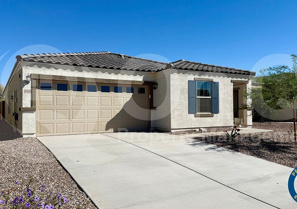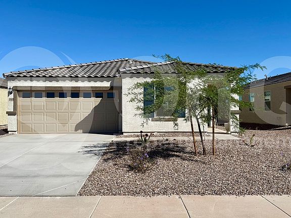 Available Now! This 1,605 square foot single-story home features 3 comfortable bedrooms and 2 full bathrooms with a functional layout that blends comfort and style. The charming kitchen includes a refrigerator, stove/oven, dishwasher, and built-in microwave, complemented by ample cabinetry and a convenient breakfast bar for casual dining. The inviting great room design offers open-concept living with plenty of natural light, perfect for relaxing or entertaining. Tile and carpet flooring flow throughout the home, creating a warm and practical feel. The spacious primary suite boasts a walk-in closet and an ensuite bath for privacy and ease. Secondary bedrooms are nicely sized with generous closets, ideal for family or guests. The laundry area includes a washer and dryer for added convenience, plus central AC for year-round comfort. Parking is easy with a 2-car garage offering extra storage space. Step outside to enjoy a covered patio and a fenced backyard, great for pets or weekend gatherings. Situated in the desirable Replat of Heartland neighborhood, residents appreciate nearby parks, schools, and shopping, making this Coolidge home a wonderful blend of value and convenience.