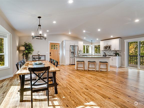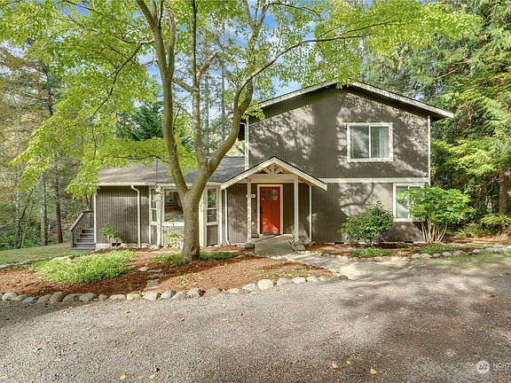 Escape to tranquility in this exquisite retreat located on a secluded 1.488-acre lot with 300 feet of waterfront that includes a .41-acre lot. Build or embrace the privacy the extra lot provides. The home is an entertainer’s dream with walls of windows in the living room that provide panoramic views all the way to the water, an updated kitchen, and large dining room. Relax on the wrap-around deck with your morning coffee or meander down the newly hardscaped paths and stairs to the water, ready for fishing, kayaking or crabbing. Don’t miss the separate bonus space with a murphy bed too! Explore the waterfront, gather around the fire pit, or unwind in the hot tub while enjoying peaceful views and the shimmering marina lights on the Sound.