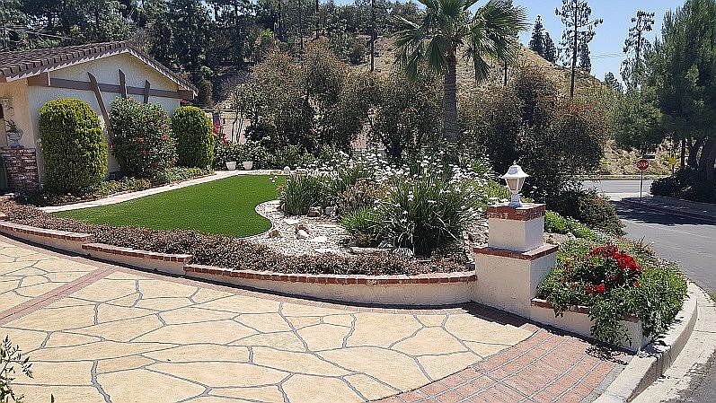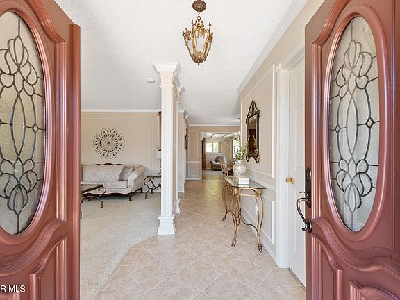 Located North of Rinaldi, near the Knollwood Country Club & Golf Course, on a quiet CUL-DE-SAC street with sought-after privacy. Curb appeal with mature landscaping, custom faux flagstone/brick driveway. Double door entry leads to a large living room with custom column architectural details that frame the entry wall and the bay window. The dining room is open to the large family room which is highlighted with ceiling beams and recessed lighting. Both the family and adjoining flex room have new wood-look tile flooring. The breakfast area has a cathedral ceiling and sliding door access to the side patio. The kitchen has granite countertops and backsplash, a stainless Bosch 5 burner cooktop, and plentiful light. The rear yard can accommodate your party guests: brick patio and easy care planters, plus a raised fire pit with custom painted floor. Delicious tangerine tree. Side yard shed. Easy care yards with artificial grass with pavers and stone are drought resistant. Upgrades are many to count and include; copper plumbing, double pane windows, crown molding, door and window trim, and much more.