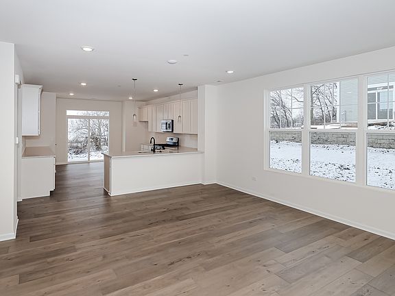 First floor bedroom and new construction at the Townes at Silo Bend in Lockport! Minutes away from I-355 and downtown Lockport. This attractive Traditional exterior will capture your attention, especially with the beautifully landscaped exterior which is maintenance free! The Danbury home is what you have been waiting for with 3 bedrooms + loft, 2.5 baths, 2 car garage, and a FIRST FLOOR OWNER'S SUITE! Everything you need is conveniently on the first floor and this home is an END UNIT. This home includes stained railings with white spindles along the staircase, 9' ceilings on the whole main floor, laminate wood flooring on the main floor, and ceramic tile floors in the baths along with a double vanity in the owner's bath. 42" linen cabinets with tons of storage, crown molding, cabinet hardware, and soft-close drawers are included, plus stainless steel GE appliances, and quartz countertops in the kitchen & baths! Off the kitchen there's also a breakfast bay extension to allow space for a breakfast table. This home will be ready for move in by January 2023!!