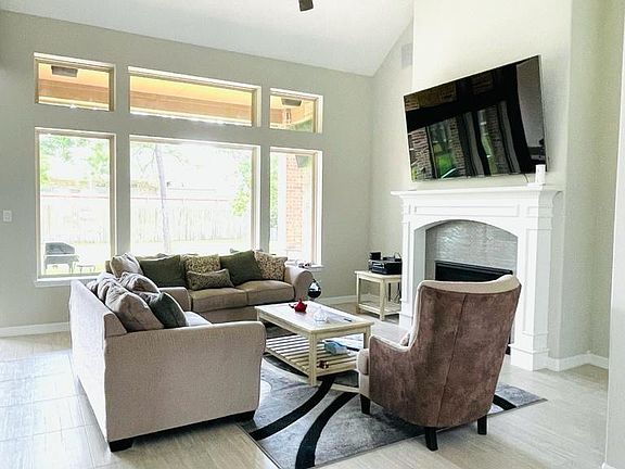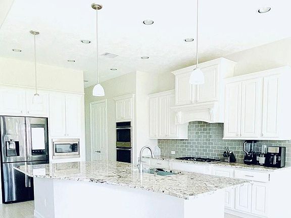 This new two-storied Trendmaker Home has an attractive stone elevation with upgraded white mortar. The foyer leads to an open-space floorplan with spacious family room, kitchen, & casual dining space. The kitchen has stainless steel appliances including double ovens, granite countertops & a custom backsplash. This home is beautiful & easy to maintain tile flooring. There is a media room on the second floor! The covered patio looks out onto a fully sodded backyard. Sprinkler system included.