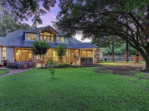 Updated custom built home with contemporary style and architectural flare on a quiet cul-de-sac in Estates at Windrush. Lovingly maintained and upgraded on over a half-acre with a wooded park-like backyard. The abundance of windows bring the outdoors in and fills the home with light. Great entertaining flow both inside and out. Other designer touches include leaded glass doors and transoms, custom lighting, dramatic 2-story cathedral entry, Brazilian granite, hardwoods and Italian tile with marble inlays. This home boasts a 3-car garage with front and back garage doors, game room, master down with spa-like bath, media room, upstairs flex room with balcony and 3 fireplaces. The outdoor slate patio has been enlarged to include multiple seating areas and a wet bar with counter height seating and extends to the fountain, fire pit and spa.