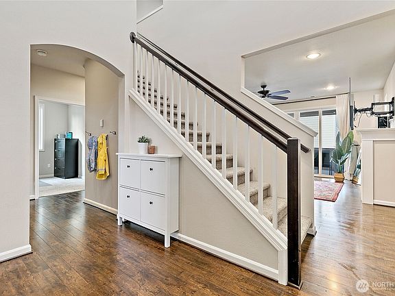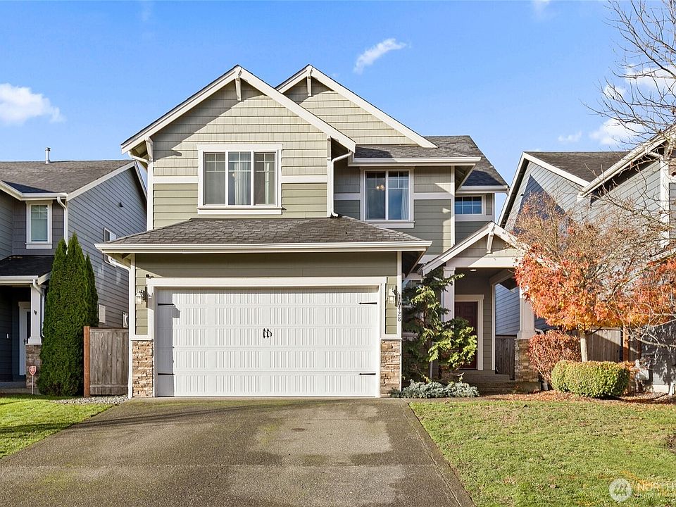 Discover comfort and convenience in this well-maintained 2014 home featuring an open concept living, kitchen, and dining area perfect for everyday living and gatherings. The kitchen shines with new appliances, granite counters, freshly painted cabinetry, and espresso accents, while hardwood floors flow throughout the main level. The spacious primary suite offers an upgraded closet system for excellent organization. A flexible office/den adds versatility. Enjoy the low-maintenance yard from the back deck complete with an outdoor gas fireplace. Located just a short walk to the neighborhood park and offering an easy commute to JBLM, this home blends style + practicality in a great location.