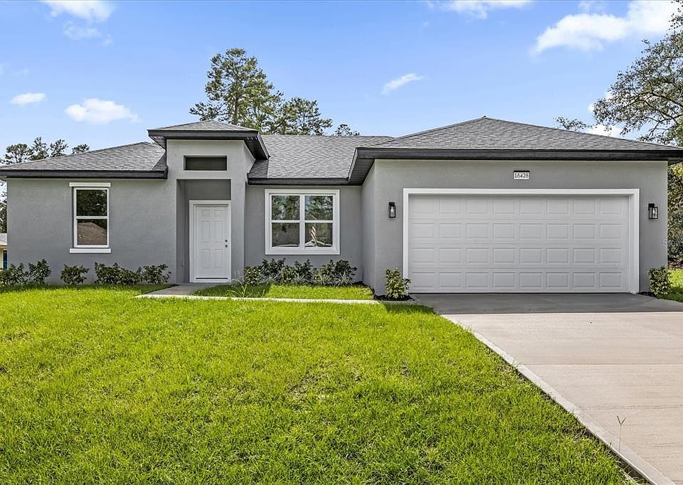 This stunning 4-bedroom home is ready for its first owner. It features a spacious master suite with a tub and a 2-car garage, offering modern, functional living space. Enjoy the new kitchen appliances and cabinets, along with elegant white quartz countertops. The location is fantastic, placing you minutes from a supermarket, main access roads, and the heart of Marion Oaks. With a spacious yard and brand-new construction, this is the perfect opportunity. Schedule a showing today!
