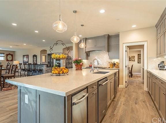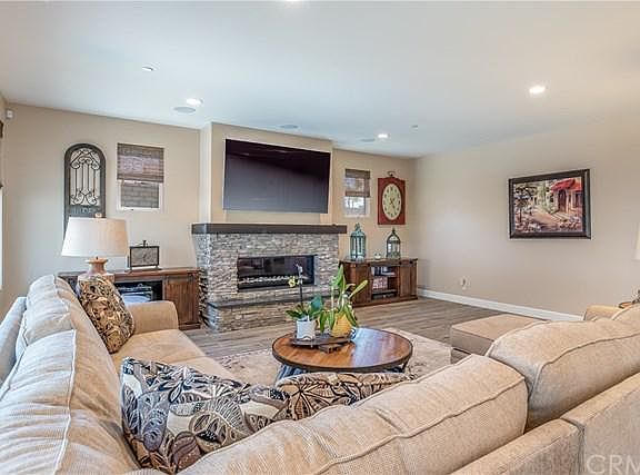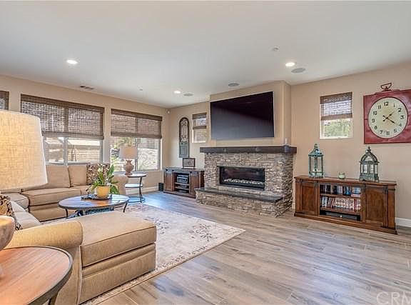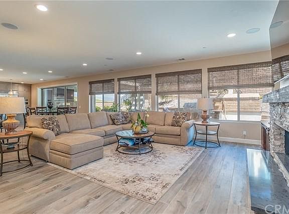 VIEW..VIEW. This Luxurious NEWER home located in a gated community of Hillcrest. This home is situated on a 10,388 square foot lot with many upgrades. Built in 2017. The property features 5 bedrooms, 6 baths plus a large loft (total 5 suites, one suite downstairs). High-grade wood tiles, recessed lightings and custom window coverings throughout. Formal dining room. Huge family room with fireplace and open to large built-in bar with wine refrigerator. Gourmet kitchen with granite counter tops, stainless steel appliance, large built-in refrigerator and oversized kitchen island. Master with large covered deck to enjoy the mountains and city lights view. Upgraded master bathroom with walk-in closet. Beautiful backyard with covered patio (additional square feet of indoor/outdoor living space Included fireplace and a flat screen TV), built-in pizza oven, BBQ and heater. Entertainers delight!!! 3-car garage attached. Brand new solar panels has been PAID IN FULL.