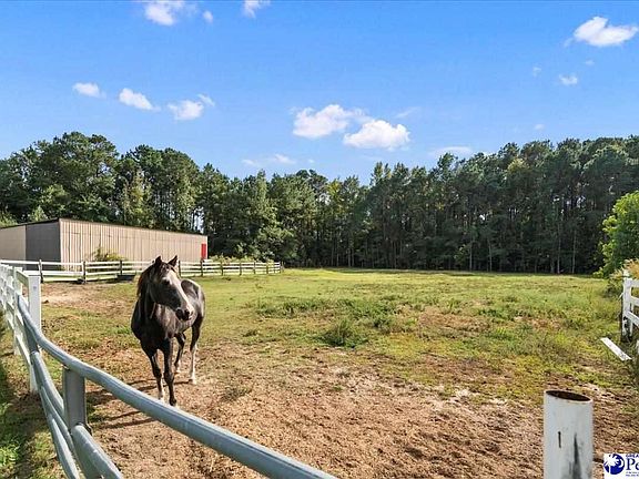 A rare, 100-acre well-equipped equestrian and residential farm in the heart of the Pee Dee is 1643 Darlington St. Located just 15 minutes from downtown Florence and easy access to both I-95 and I-20 it's hard to imagine a more ideal location. Not many 100 acre farms are only a 5 minute drive to Target. This property features 2 parcels totaling nearly 100 acres of land with a stocked pond, hayfields, and plenty of fenced area for grazing. The main gated entrance is on Darlington St and but there is additional access to the property from Holly Bush Road. The house is high quality and was custom built for the current owners. This one story floor-plan has beautiful quality appointments such as high ceilings throughout, crown moldings, and gorgeous arched windows that offer tons of natural light. All of the flooring in the house is real hardwood or tile. The kitchen features custom wood cabinets, granite countertops, stainless steel appliances, an island, and wet bar area. The primary suite is very spacious and has a beautiful trayed ceiling, large walk-in closet and access to the back porch and patio. The primary bathroom has double vanities, a jacuzzi tub, and separate shower. On the opposite side of the home, you will find 3 additional bedroom and a full bathroom. Grab a book and your coffee and head out to the Gazebo to relax and soak in some quiet time. Now let's talk about the land and all of the amenities. Let's start with the 50X300 (15,000 sqft) equestrian barn that has fourteen 12x12 stalls with automatic waterers, a shoeing area, a large office and full bathroom. There is also a 4-horse automatic hot walker. The pictures do not do enough justice of how large this stable actually is. Additionally, there is a separate 30x60 active workshop/storage building with high clearance that is perfect for storing heavy equipment or even a large boat or trailers. If you like to fish or then you will love the stocked pond on the property. Whether you are looking for a personal farm, or an equestrian sanctuary 1643 Darlington Street offers the perfect balance of refined living, equestrian excellence, and southern charm - truly a place to call home.