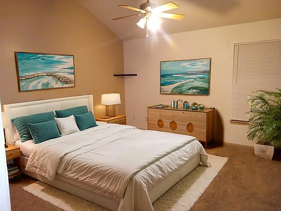 Welcome to your new home! This beautiful property features two spacious master bedrooms, each with its own full bath and elegant vaulted ceilings perfect for your privacy and comfort. Enjoy the convenience of an attached garage with a garage door opener, making your comings and goings effortless. The downstairs has been freshly painted in a lighter color, brightening the space and giving it a clean, modern feel. Cozy up by the tiled fireplace in the newly painted living room ideal for relaxing evenings. The downstairs bath adds an extra touch of convenience. The home is adorned with plush carpeting throughout and durable vinyl flooring in the kitchen and pantry, providing both style and practicality. Step outside to a shared backyard where you'll have your own private deck perfect for enjoying the outdoors. The kitchen comes fully equipped with a microwave, dishwasher, and all standard appliances, plus washer and dryer hookups for added ease. Recent updates include fresh paint and modern lighting, making your move-in even more enjoyable. The kitchen has also been updated, though not yet reflected in the photos come see the enhancements for yourself! Located in a quiet neighborhood with great schools, this is the perfect place to call home. No Smoking unit Attached garage with remote and driveway for a 2nd car Small dog under 30 lbs or cat with a $600 non refundable pet deposit Tenant pays water/gas/electric utilities Trash/Lawn covered by HOA Laundry hookups available for your laundry machine 1 year lease with option to renew