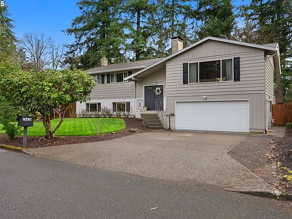 Step inside to the split-level where you will go upstairs to the living room with a large picture window and a cozy fireplace open to the formal dining room. The remodeled kitchen has granite counters, stainless appliances and an eating nook with a sliding door out to the covered deck. The primary bedroom has the convenience of an attached and updated bathroom. Completing this level are 2 bedrooms and another remodeled bathroom with a double vanity. The lower level has a family room with the 2nd fireplace & a storage closet, a laundry room/3rd full bathroom and 2 additional bedrooms. This space offers the potential for dual living within the property. The backyard is fenced and there is an attached storage shed located under the covered deck. Welcome home!
