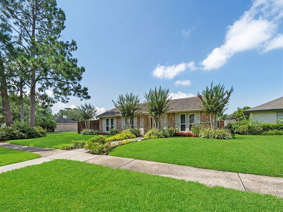 Welcome home to this amazing one story home that will surely please your families needs. Home did not flood during Harvey! A 3/2/2, huge corner lot with detached garage, open concept, spacious kitchen with granite counter tops, tiled back splash and stainless steel appliances, light and bright breakfast area, large family room with vaulted beam ceiling & fireplace, gracious master suite, extensive tile flooring throughout, fresh carpet and paint, dual formals or secondary living area, double pane windows, roof '14, HVAC '13, gutters '19, water heater '19, excellent curb appeal with lush landscaping and mature trees on corner, over sized back yard patio, inviting pool & hot tub with recent quartz re do, cool decking surround, gated access to pool, walk to elementary school, close to all shopping, dining and easy access to I-45. This home is move in ready so make your appointment today. This property will not last long. All information per seller & HCAD, all should be verified by buyer.