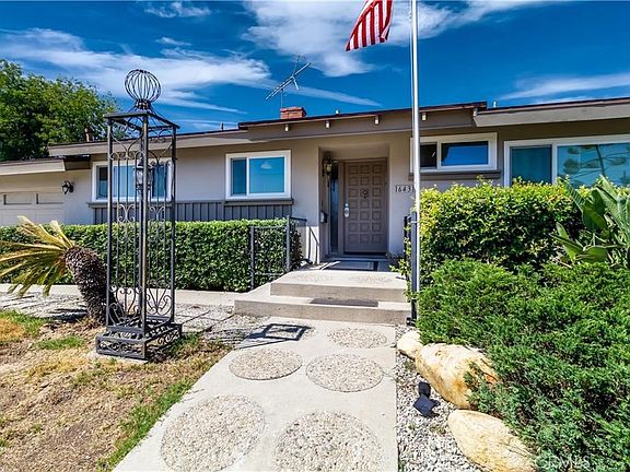 Wonderful ranch-style home nestled on a spacious 7,904 sq ft cul-de-sac lot. This mid-century modern, 3 bedroom, 2 bathroom, 1,316 sq. ft. property has a formal tiled entry that leads into the open floor plan living space that is typical of a classic “Rambler House”. This traditional house features hardwood floors throughout and features tile in the kitchen and bathrooms. The living room boasts a white brick accent wall with a fireplace and raised hearth. A wide archway leads to the bright kitchen with its center island, built-in appliances, ample cabinet space and a sunny breakfast nook with plantation shutters. A sliding glass door leads to the expansive entertainer’s back yard featuring a large partially covered patio, a sparkling fenced pool and a storage shed. The primary bedroom has a full en-suite bathroom, plantation shutters and a ceiling fan. The two additional bedrooms are generously sized and share a 3/4 bath. The two-car attached garage has direct access and features a dedicated laundry area. This fantastic house is conveniently located near restaurants, shopping, recreation, entertainment and transportation.