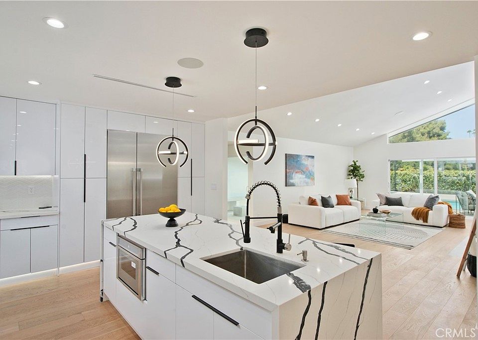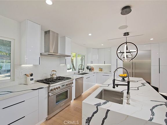 Welcome to this captivating, smart, sexy and completely remodeled single level residence. Tucked in the hills on a quiet cul-de-sac street, this magnificent home is highlighted by its grand open living spaces, vaulted ceilings and stunning designer finishes adorning every space of the home. Appointed with a spectacular chef's kitchen, anchored by its grand breakfast bar center island, waterfall countertops, custom cabinetry and culinary styled Thermador appliances. The amazing open flowing floor plan features its expansive family room with central fireplace and separate living room with mirroring walk-up bars and wall of windows overlooking the treetops, valley lights and distant mountains. Encompassing five spacious bedrooms that include its amazing master suite with direct rear yard access, oversized walk-in closet and sensational spa styled bath with dual sink vanities, elegant tile and party-sized seamless glass shower with four separate heads. Step out, relax and entertain with style in the ultra-private rear yard, highlighted by its sparkling swimmers pool with cascading deck jets, covered patio retreat, cozy firepit lounge, sports court area and fabulous outdoor kitchen with fire feature, perfect for roasting marshmallows. Outfitted with smart home features that include camera system, lighting controls, sound system and every bathroom featuring a top-of-the-line bidet toilet! Located in the Lanai School District with easy Westside access, this true masterpiece is one you will surely not want to miss!!!