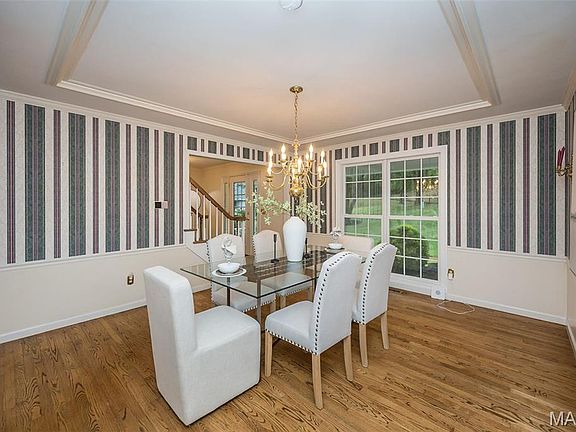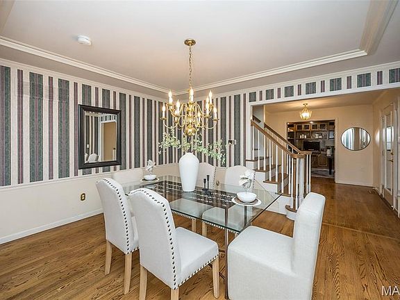 Experience refined living in prestigious Manors at Clarkson Valley. This elegant 2-story residence is set on a lush, private .82-acre lot w/in an exclusive enclave of just 36 estate homes. Rich hardwood floors flow throughout the main level, complemented by bay windows & a stately brick fireplace in the family room.
