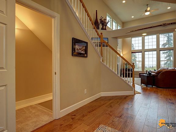 Beautiful South Anchorage home with an open concept, large basement & panoramic views. Kitchen comes w/ stainless appliances, solid surfaces and opens to a great room w/ cathedral ceilings and large windows. Master suite, laundry & 2 bedrooms on top level and the basement is perfect for kids & entertaining. You'll enjoy the multi-level decks & the 3 car garage to keep vehicles warm and dry.