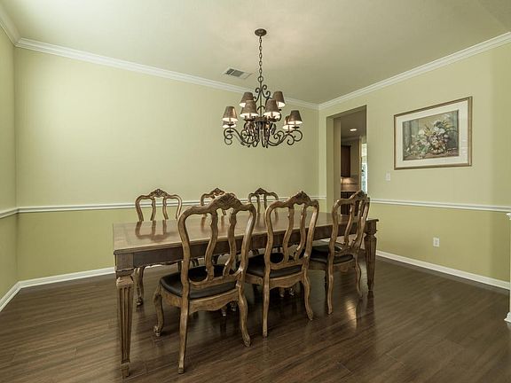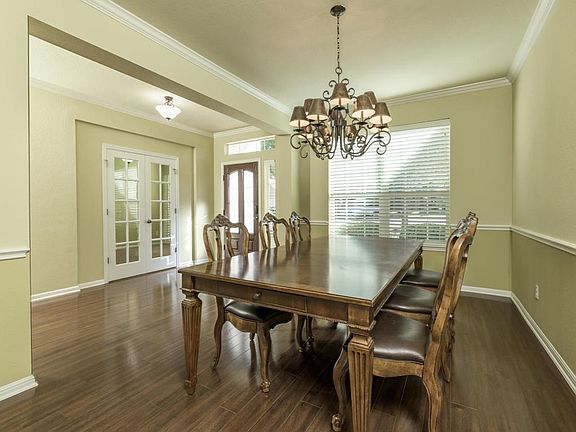 Great home with 6 bedrooms and 4 full bathrooms. Master bed/bath and guest bed/bath downstairs PLUS a private study/office with french doors. 4 more bedrooms and 2 full baths upstairs with a gameroom and small loft area. WOOD floors and lots of crown molding; High ceiling in Family Room; Lots of natural light; Kitchen opens to Family Room; Under cabinet lights in Kitchen; Jetted tub in master bath; Utility room has sink; Full sprinkler system and full gutters; GREENBELT and backs to nature trail; Zoned for highly ranked schools