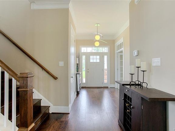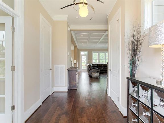Fantastic opportunity to own the popular Keswick plan by Homesmith custom built only three years ago with all the upgrades you're looking for! 10' ceilings on the first floor with the beautiful wide planked darker hardwood floors, and open floor plan filled with natural light. The kitchen is just gorgeous with custom cabinets, gas range, tile backsplash & huge island with seating that opens to the family room. You'll love all the custom trim work throughout the main living areas with built-ins, triple crown molding, wainscoting, & coffered ceiling. The second floor owner's suite is a true retreat with a huge walk-in closet and spacious bathroom with custom tile work, granite counters, and a wine and coffee bar complete with fridge & separate sink. The unfinished walk-out basement offers an additional 1200 square feet of living space with rec room, bedroom, storage area, & is plumbed for a full bath. The unfinished walk-up attic could be finished as well for even more living space. Enjoy all the amenities Hallsley has to offer with miles of walking trails, clubhouse, resort style pool, dog park, zip line, and playground. Oversized 2 car garage and almost a half an acre lot.