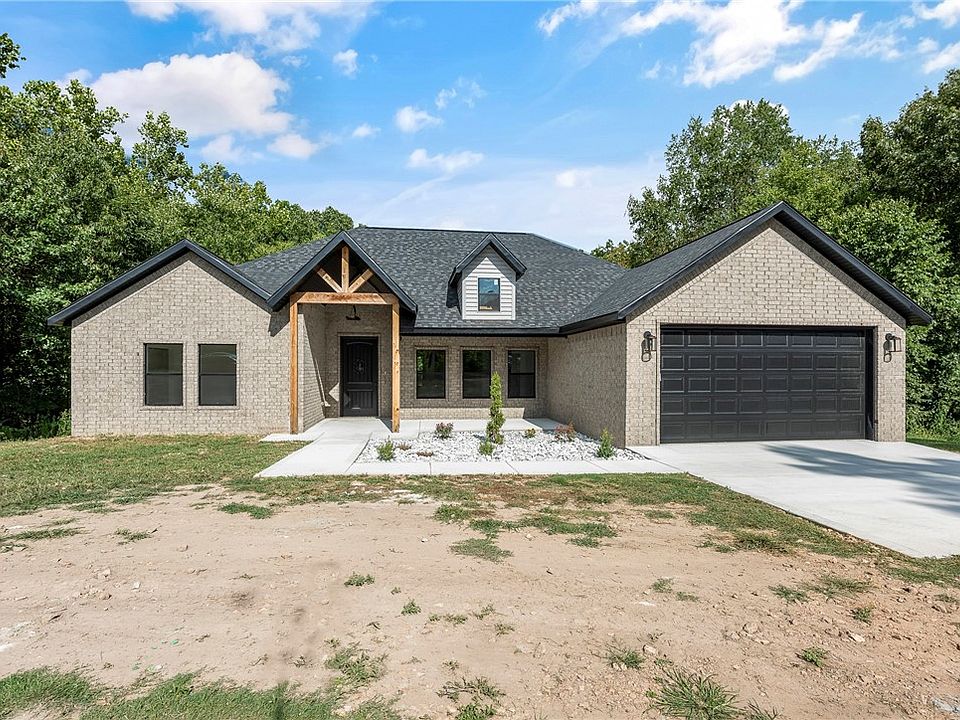New construction on 2.48 +/- acres. Home features; 4 Bedroom, 2 Bathrooms, Formal Dining Room, open & split floor plan, brick maintenance free exterior, keyless entry, inviting covered porch, large covered patio, and flat yard. Living Room is open to dining & kitchen with vaulted ceilings. Eat-in Kitchen w shaker style cabinets, granite countertops, tile back splash, & pantry. Primary suite features; double sink, deep soaker tub, walk-in shower, & large walk-in closet. Located close to I49 for easy dialy commute.