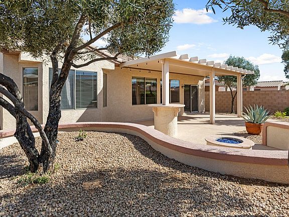 Popular Azalea model for sale in The Grand. Your living space is extended as soon as you walk out to the private walled backyard. The large covered patio, mature landscaping, and gas fire pit will provide hours of enjoyment. This 3-bedroom home has a split bedroom floorplan allowing privacy for homeowners and guests alike. Features of this home include a newer Trane HVAC system (2022), newer SS Samsung 4-door Flex Refrigerator, newer SS Samsung gas range, two tone kitchen cabinets, NEW washer/dryer (2024), media wall w/ accent lighting, updated fans/lighting, larger closet off primary bath, extended garage, tankless gas water heater, water softener, utility sink in garage, and more.