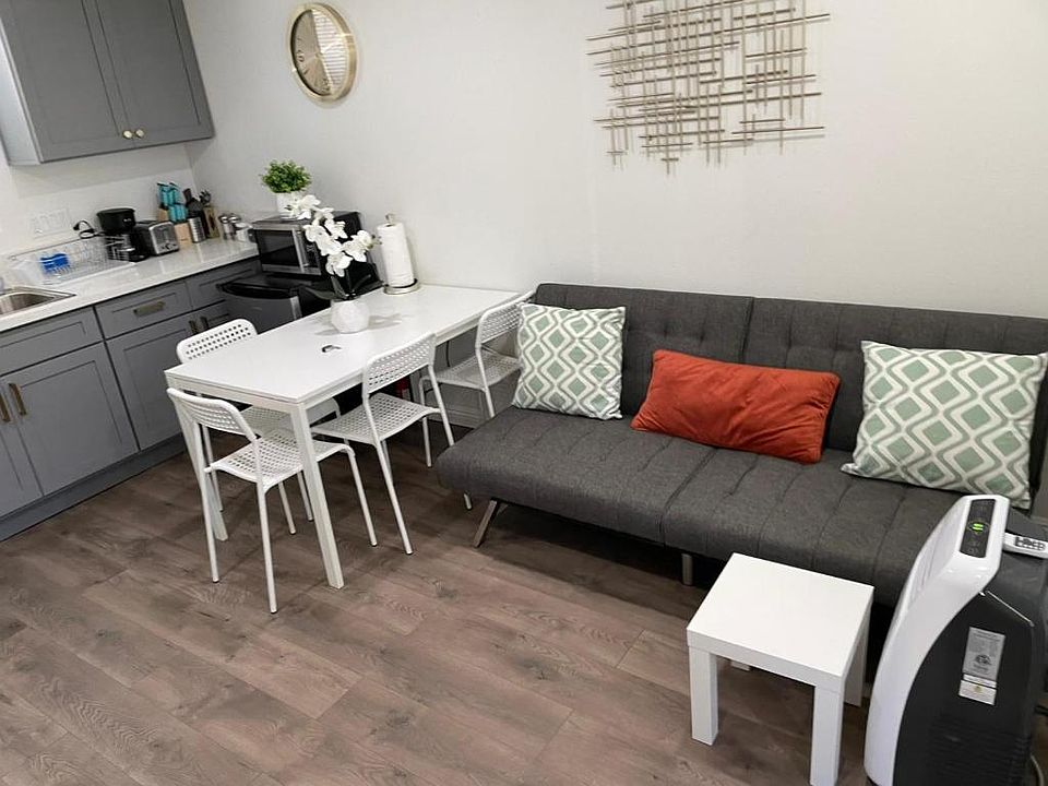 Brand New Guest House built in 2022. Features 2 bedrooms and 1 bath. All new appliances and the basic kitchen supplies. 43" SMART Flat screen tv. There's a futon in the living room that folds out into a bed and one AC. Bedroom 1 features a queen bed, closet, one night stand, washer and dryer and AC. Bedroom 2 Features a bunk bed and a clothes rack There is one private parking spot for a COMPACT car only. Free street parking is available in the neighborhood for larger cars and trucks. NO PARTIES ALLOWED! **A new larger fridge will be installed than what is seen in pictures** Minimum of 30 day reservation to 1 year All Utilities Included Qualifications: 1. Credit Check required 2. $2000.00 deposit 3. Recent Pay Stub Renter may rent month to month up to a year lease. All utilities included No smoking One reserved parking spot for compact car or mid-sized vehicle Credit Check required and recent Pay Stub $150 cleaning fee