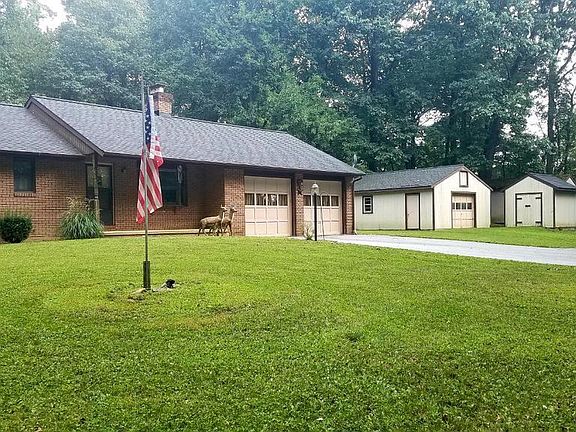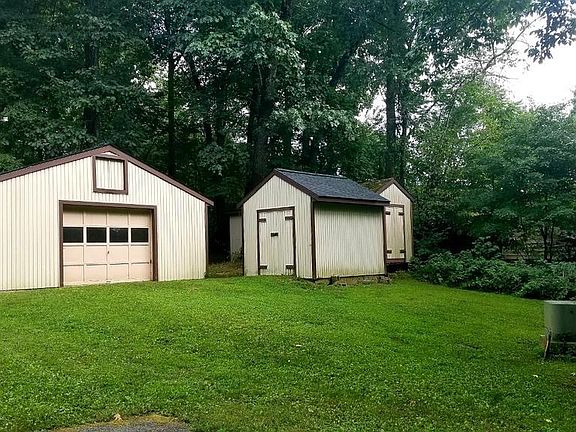 Lovingly maintained brick rancher surrounded by over 2 and a half acres of tree lined land just waiting for your finishing touches. Bay window brings in lots of natural light, hardwood floors underneath the existing carpeting. New roof in 2016. Over-sized attached 2 car garage with workshop plus additional 2 car garage, storage sheds and wood shed. Private and spacious setting with tons of potential. Cozy, quiet and move in ready!