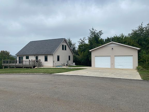 Discover your dream home in this charming 3 bed, 2 bath perched on a hilltop with stunning water views, 4 lots total, equaling over 1 acre. This property offers a spacious 2 car garage and a versatile full basement ready to finish to your liking. The open concept living area is bathed in natural light, with large windows that frame the lake views. The master bedroom offers an ensuite, and the second full bath offers a handicap accessible whirlpool tub. Outside, enjoy your morning coffee while admiring the lake from your wrap around, partially covered deck. A storage shed and a Generac whole house generator, along with a fenced area for your canine friend. Just a short walk to the association playground and pickleball court. The public access for boating fun is just down the road.