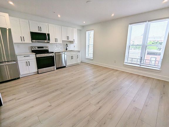 Enjoy this beautiful and thoughtfully designed apartment in Brewerytown - one of Philadelphia's hottest new neighborhoods! Enter the front door and make your way to the 3rd floor entrance that opens up a into spacious kitchen with GE appliances, quartz counter-tops, and plenty of cabinet space. Adjacent to the kitchen is a laundry room and open concept living and dining areas and lofted 16 foot high ceiling with skylight. On the same level you'll find a full bathroom next to a nicely sized bedroom and utility closet. The rear of the 3rd level boasts a master suite with and en-suite bathroom with walk-in shower and large closet. The upper level has a full bathroom and bedroom and is surrounded by natural light with access to a private roof-deck area. The apartment includes a smart thermostat, state-of-the-art video intercom and LED anti-fog bathroom mirrors. Lastly, all units share a common front roof deck on the 4th story. Ask for an application now, this unit won't last long! Fixed $75 fee for water. One-time move-in fee: $250. Tenants pays for electric. Last months rent and security deposit due at lease signing. First months rent due at move in.