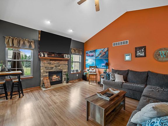 Welcome Home to this perfectly laid out floor plan. The kitchen has newer appliances and a HUGE Island opened to the large Great Room with tall ceilings and gas fireplace. The Master bedroom is gorgeous and has a locker room style tiled shower and walk in closet. The Lower lever is finished with an entertainment room, bar, theater room, den and a 1/2 bath. This Home has a specious back yard for backyard BBQs, a concrete patio, firepit and a large shed for room to store all the toys. This is a must see!
