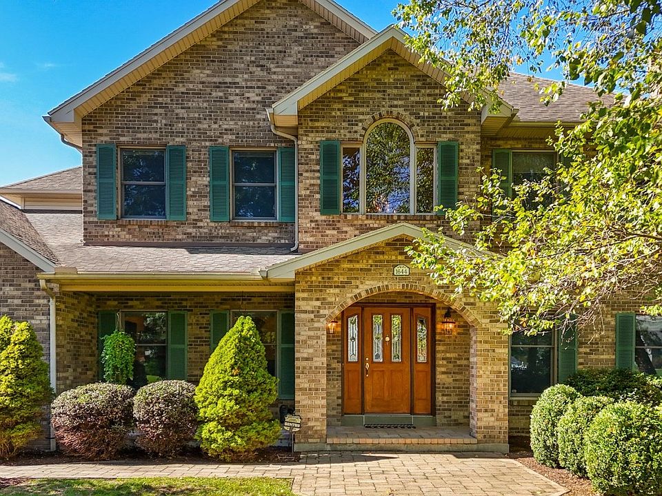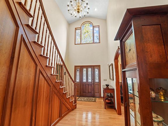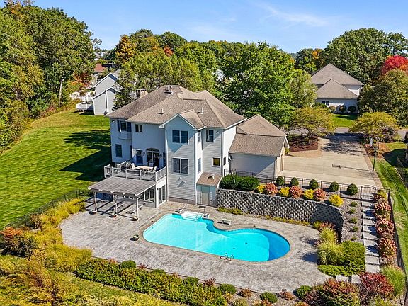 Welcome to your executive dream home! This stunning property combines timeless craftsmanship w top-of-the-line features throughout. Gorgeous woodwork, detailed trim, & custom finishes create a warm, elegant atmosphere, with an abundance of natural light in every room. The main floor offers a welcoming living room & a cozy library—w fireplaces that add warmth & charm. A convenient first-floor bedroom & full bath for guests/multi-generational living. Upstairs, the spacious primary suite boasts a large walk-in closet & en-suite bath. Step off the kitchen to your elevated deck—perfect for morning coffee or dining. The lower level opens to a resort-style backyard, featuring an inground pool, expansive stamped concrete patio, & panoramic, uninterrupted views that stretch for miles. Whether you're hosting a summer cocktail party or enjoying a peaceful evening, this outdoor space delivers the perfect setting. This is a rare opportunity to own a truly exceptional home in a sought after area.