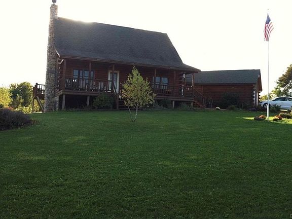 Come live the Log Home dream in this well maintained 4 bed/2 bath home on a 23+ acre corner lot complete with a small pond and babbling creek. A 40'x64' pole barn with water, electric and cement floor is waiting to be filled. A 2+ car attached garage allows you to access the home directly through the mudroom. The land offers a mixture of woods full of deer and turkey, fields, and a nicely landscaped yard. Home and barn set back off the road to allow for peace and privacy.