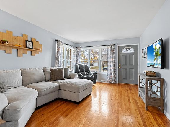 Charming 3BR/1BA all-brick suburban ranch greets w/ shining oak HW floors & living room w/ ample sunlight! Open kitchen w/ pantry & appliances & updated flooring ('21). Primary bedroom w/ natural plank wall, 2nd bedroom w/ sliding door opening to deck & tidy back yard. Walk-thru dual access bath w/ updated vanity, toilet, light ('20). Lower level offers a spacious 400 sqft partially finished rec-room w/ enclosed ceiling, painted walls, recessed lighting, and heat distribution. Ample storage space in laundry & mechanical area w/ new water-heater ('24).