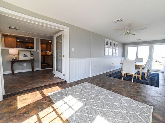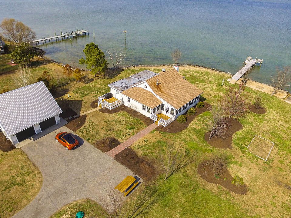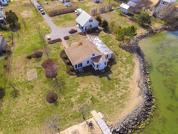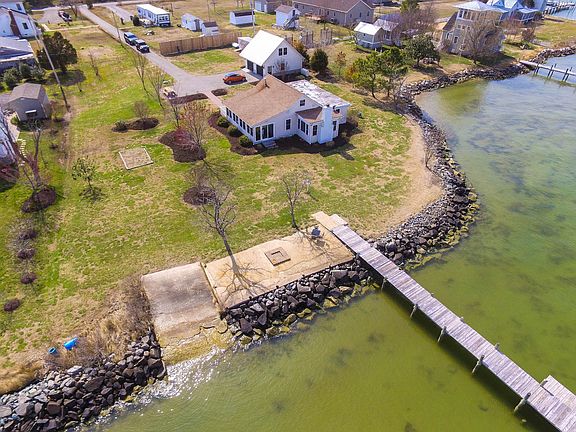 Adorable and Affordable waterfront w/spectacular views for miles up, down and across the creek. 3/4 acre lot with rip rap, private pier, and private boat ramp. 2 bdr, 2 bth with hardwood throughout. Kitchen has been updated, and new appliances added. Awesome sunroom with lots of windows add to the view. Huge two car detached garage with upstairs loft area. Truly a must see!!