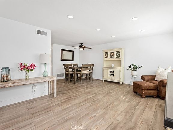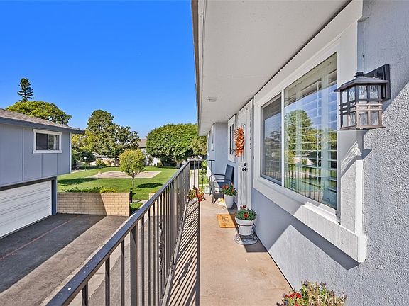Fabulous upper end unit with an ideal Southwest exposure, along with park and sunset views. This gorgeous condominium only shares one common wall and has no neighbor below, only the garage space. The floorplan is well designed, with a spacious living room which flows into a large dining area. The kitchen has been completely remodeled with new cabinets, quartz counters, a tiled backsplash, stainless steel appliances and refrigerator, included with the sale. The bathroom has also been updated with a new tub and tiled surround plus a new vanity with quartz countertop. The bedrooms are carpeted and the front bedroom has a ceiling fan while the 2nd bedroom features a walk in closet. Bonus features include: Elegant vinyl flooring in the living room, dining room and kitchen, smooth ceilings, recessed lighting, panel doors, a hall pantry, dual pane windows plus plantation shutters. There is also a 1 car garage with a large storage closet. This lovely condominium is serenely situated within the heart of the community, while offering sunset and park views from the private balcony, which is also perfectly situated for capturing ocean breezes. The community is harbor adjacent, while being walking distance to schools, a park, golf, shopping, restaurants and is less than 2 miles to the beach!