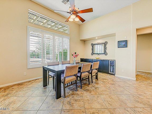 Live like you're on vacation every day in this stunning home on the Tuscany side of Pebble Creek, an award-winning 55+ golf course resort community! This spacious 3 Bed, 2.5 Bath Sonata Plan with Den features soaring ceilings, shutters, and an entertainer's kitchen with granite counters, SS appliances, custom cabinets, wine fridge, and large breakfast bar. The elegant primary suite includes a soaking tub, walk-in shower, and generous walk-in closet. Bonus room includes a Murphy bed, guest ensuite, and formal dining/flex room (furniture included!). Enjoy outdoor living with paver patio, putting green, built-in BBQ, firepit, pergola, and private preserve views. Enjoy plentiful storage with a 2-car + golf cart garage. Come experience resort-style living. Visit this beautiful home today.