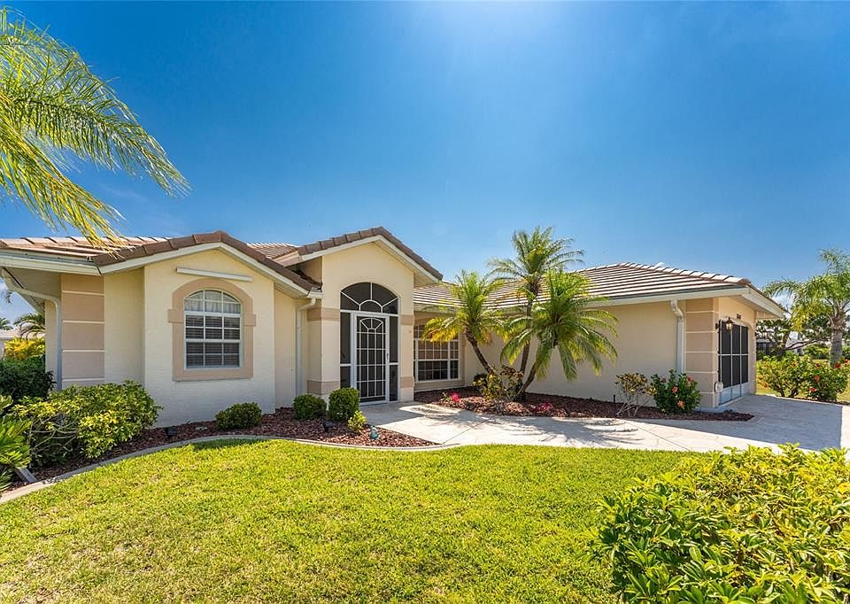 SIGNIFICANT PRICE REDUCTION! Welcome to your new home in beautiful Burnt Store Lakes located in desirable X flood zone. This lovingly maintained ONE-OWNER 3-bedroom, 2-bathroom POOL HOME with LIVING AREA, DINING AREA, FAMILY ROOM exudes pride of ownership inside and out. This home features a NEW 2023 STYLISH FLAT TILE ROOF AND GUTTERS and spacious tiled living areas with high ceilings. Step into the inviting great room that seamlessly combines living and dining spaces, ideal for entertaining guests. The kitchen is a chef's delight, equipped with plenty of WOOD CABINETS, a stylish tile backsplash, solid surface counters, STAINLESS FRIGIDAIRE APPLIANCES and a EAT-IN AREA WITHIN THE KITCHEN. Off the kitchen, a comfortable FAMILY ROOM awaits, perfect for relaxing and casual gatherings. Enjoy panoramic views of the pristine pool, thanks to the expansive glass doors that flood the interior with natural light. Solar window film ensures energy efficiency while custom window treatments and blinds add a touch of sophistication. Retreat to the primary bedroom suite featuring plush carpeting, his-and-her closets, and a luxurious ensuite bathroom with a high vanity, shower, and whirlpool tub. Two additional guest bedrooms and a dedicated laundry room with GE WASHER and DRYER provide ample space and convenience. Outside, enjoy the tranquility of your .29-ACRE LANDSCAPED OASIS, complete with its PRIVATE WELL FOR IRRIGATION, a STAMPED CONCRETE DRIVEWAY AND WALKWAY, CONCRETE CURBED PLANTING BEDS, and a SPRAWLING GREENBELT for added privacy. The HEATED POOL, nestled within a SPACIOUS LANAI and POOL CAGE, offers the ultimate retreat for soaking up the Florida sunshine year-round. This home is not just about luxury; it's also about practicality. This home comes with a BACKUP GENERATOR, SURGE PROTECTION, RHEEM A/C, as well as a WHOLE HOUSE WATER FILTRATION SYSTEM, every detail has been thoughtfully considered for your comfort and convenience. Burnt Store Lakes is a beautiful Deed Restricted Community with new custom homes being built throughout the neighborhood. Public water and sewers are in place, and this home has its own well to irrigate your lawn and plantings. Burnt Store Lakes Residents enjoy the Community Park which has covered picnic benches, a playground, and restrooms. There is a kayak ramp for Residents only that accesses Charlotte Harbor and the incredible wildlife in the Charlotte Harbor Aquatic Preserve such as Manatees, porpoises, sea turtles and an abundance of game fish. Next door at Burnt Store Marina, SW Florida’s full-service deep-water marina, restaurants are open to the public and amenities such as golf and boat dockage may be available. It’s just a short drive to Downtown Punta Gorda, one of Florida’s best small towns, with plenty of restaurants and town activities to enjoy. Just across the bridge in Port Charlotte is the new Allegiant Airways Sunseeker Resort. Or to Cape Coral, one of the largest cities in Florida. It doesn’t get any better than this to live your dream Florida Lifestyle. Schedule your private showing today and come enjoy the Florida lifestyle.