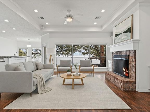 Cozy fireplacePrime waterfront lotBoat rampPrivate poolExclusive lakefront livingTennis courtsSeamless indoor-outdoor living