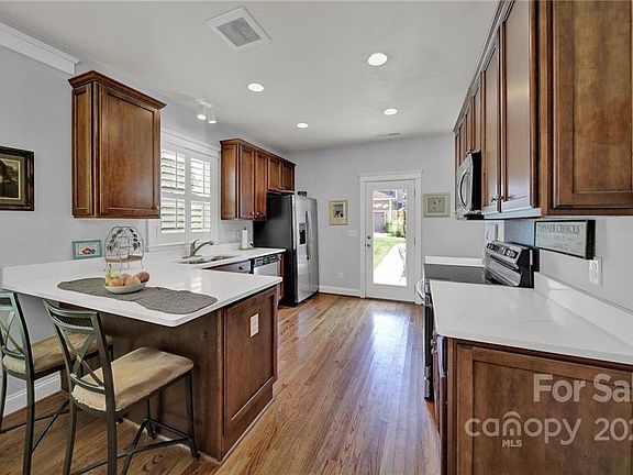 Lovely, well-maintained home with a welcoming front porch in desirable Summers Walk in Davidson. This open floor plan home offers neutral paint, crown molding, plantation shutters, hardwoods in the main living areas and new carpeting in the first floor bedrooms. Kitchen features plentiful storage, quartz countertops, new range with built-in air fryer, new sink and faucet, breakfast bar with seating and adjacent dining area. Family room with gas fireplace. Primary bedroom with sitting area, walk-in closet and storage areas. Ensuite includes vanity with dual sinks, separate shower and soaking tub. There is a patio, two-car detached garage and storage closet. Enjoy the neighborhood clubhouse, pool, playground and walking trails. Convenient to Birkdale, Davidson College, Lake Norman, I-77, I-85 and I-485.