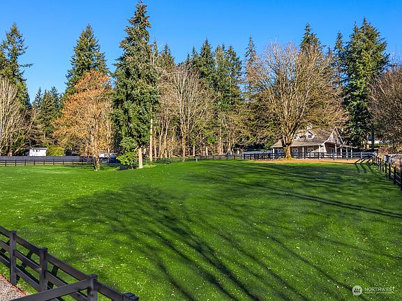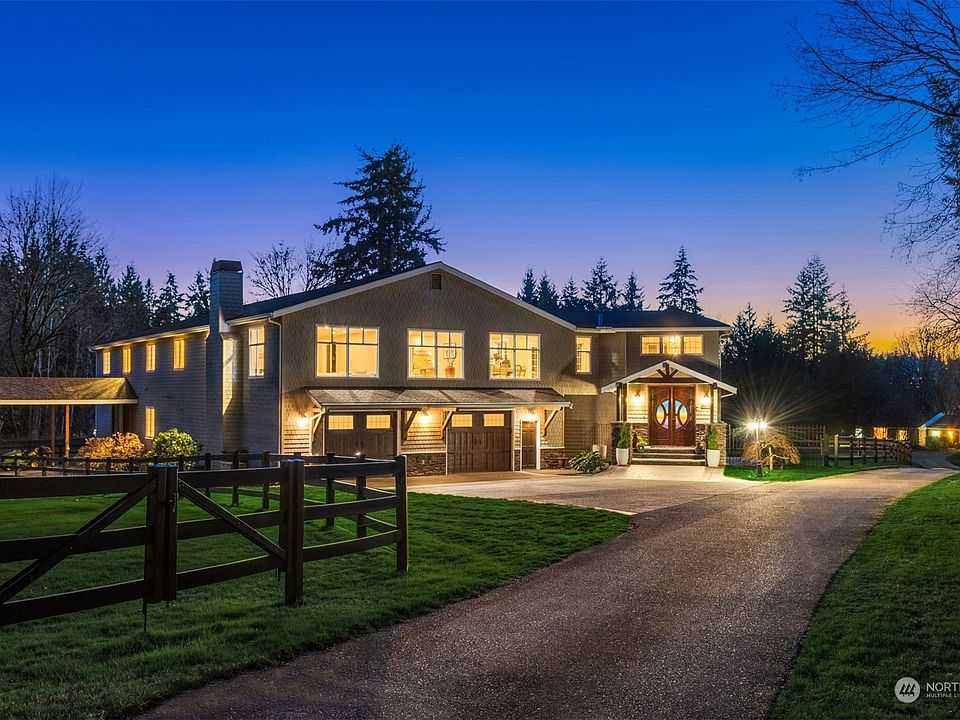 GRAND Living. GRAND Location. Hollywood Hill. Gated and private, this equestrian estate is a showstopper. Rare 5+ acres in the heart of Woodinville Wine Country. Direct access to Tolt Pipeline Trail. Premier 4-stall Barn w/heated grooming area, 3 rail-vinyl fenced pastures, mud-free paddocks & oversized tarmac. Main residence presents 5,800+ sq ft of timeless architecture, walls of windows, Chef's kitchen, 6+car garage w/dedicated RV/boat storage & shop. Heated & covered main-level outdoor dining with expansive decks & patios. Climate-controlled Wine Lounge. PLUS, Private & Charming 3BR cottage home/ADU w/1,800 sq ft of updated interiors, privacy & stunning views. Video monitoring security system. Just mins.to wineries, restaurants & more.